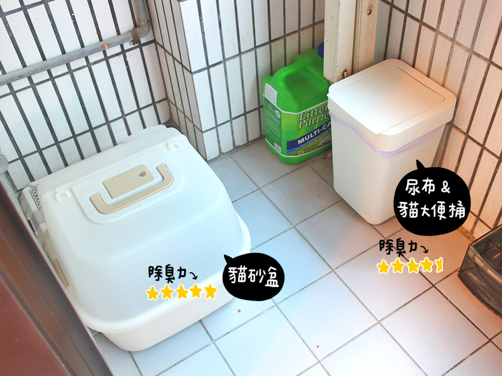 下面實驗了放廚餘的地方、貓砂盆、尿布+貓大便桶、樓上傳菸味下來的廁所