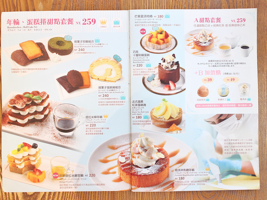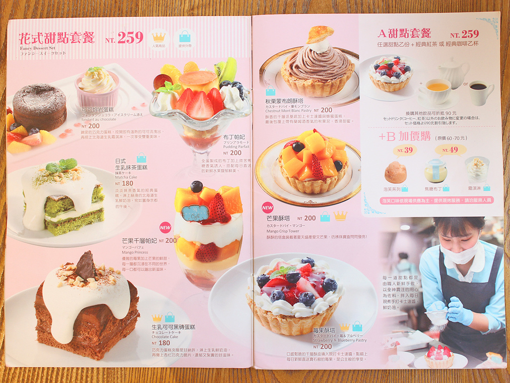 再來是菜單,一翻開我就被滿滿的甜點轟炸眼睛都亮了