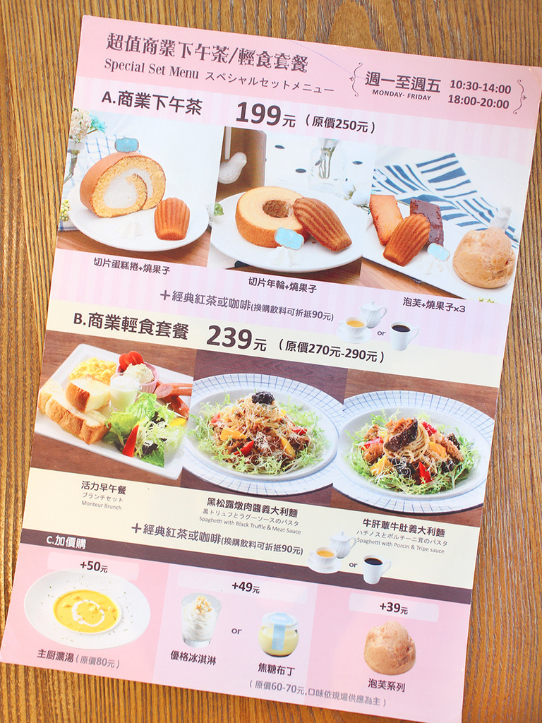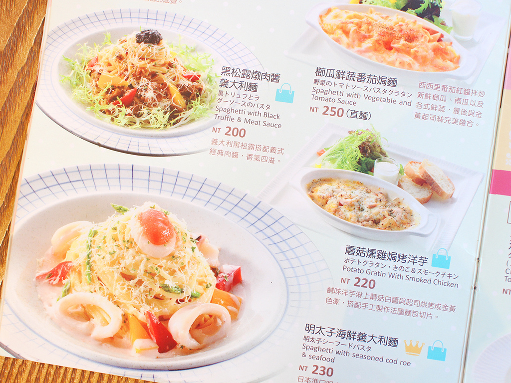翻到後面我才發現原來他們不只有甜點,也有義大利麵這些主餐可以吃