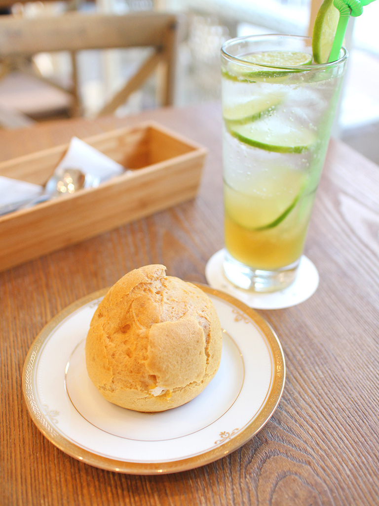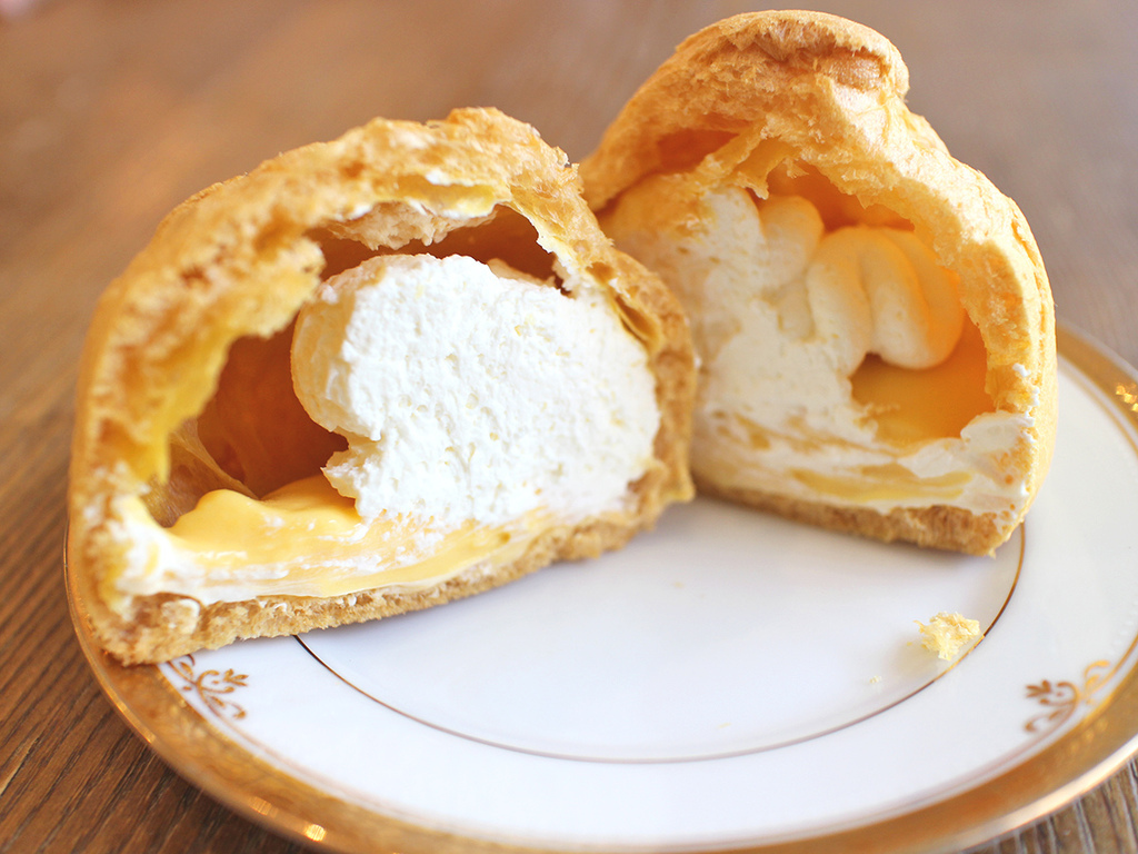 除了鮮奶油還有卡士達醬,所以一個泡芙等於可以吃到兩種口味
