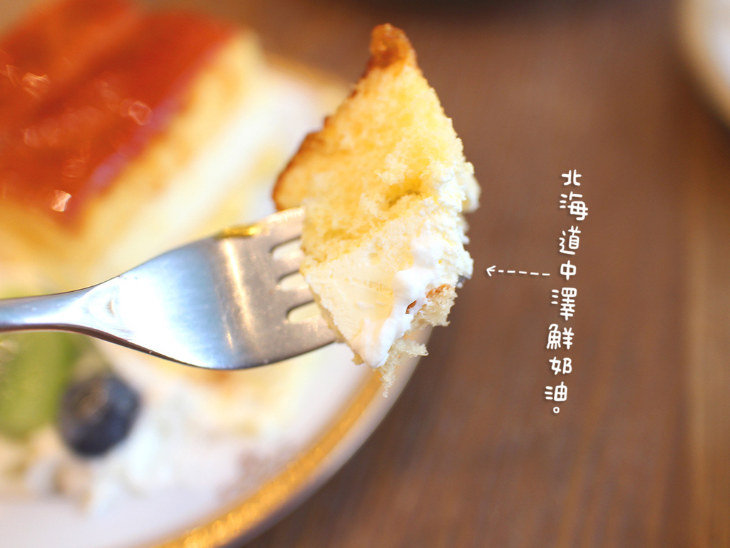而且剛送上來時因為是從冰櫃拿出來,奶油被冰過吃起來有點像冰淇淋的感覺,跟蛋糕很搭