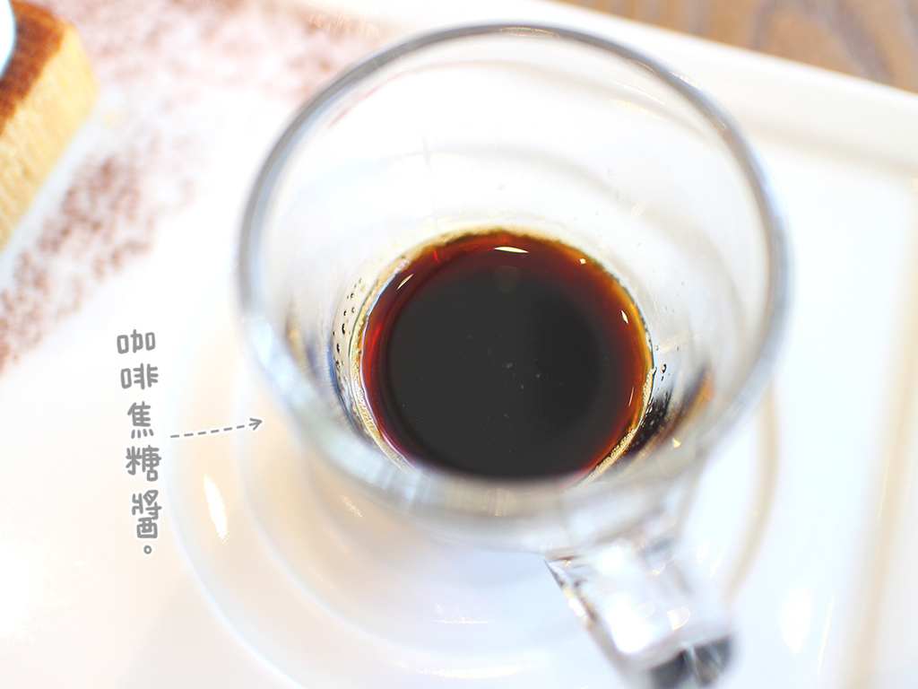 旁邊附的是咖啡焦糖醬,店員建議可以先吃吃看原味再淋醬