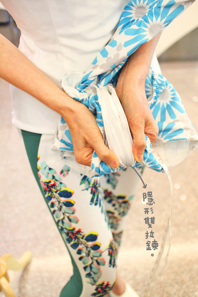 而外面那一層則是隱形拉鍊,所以不仔細看是看不出來的,像老師身上這件就是,完全可以當外褲穿