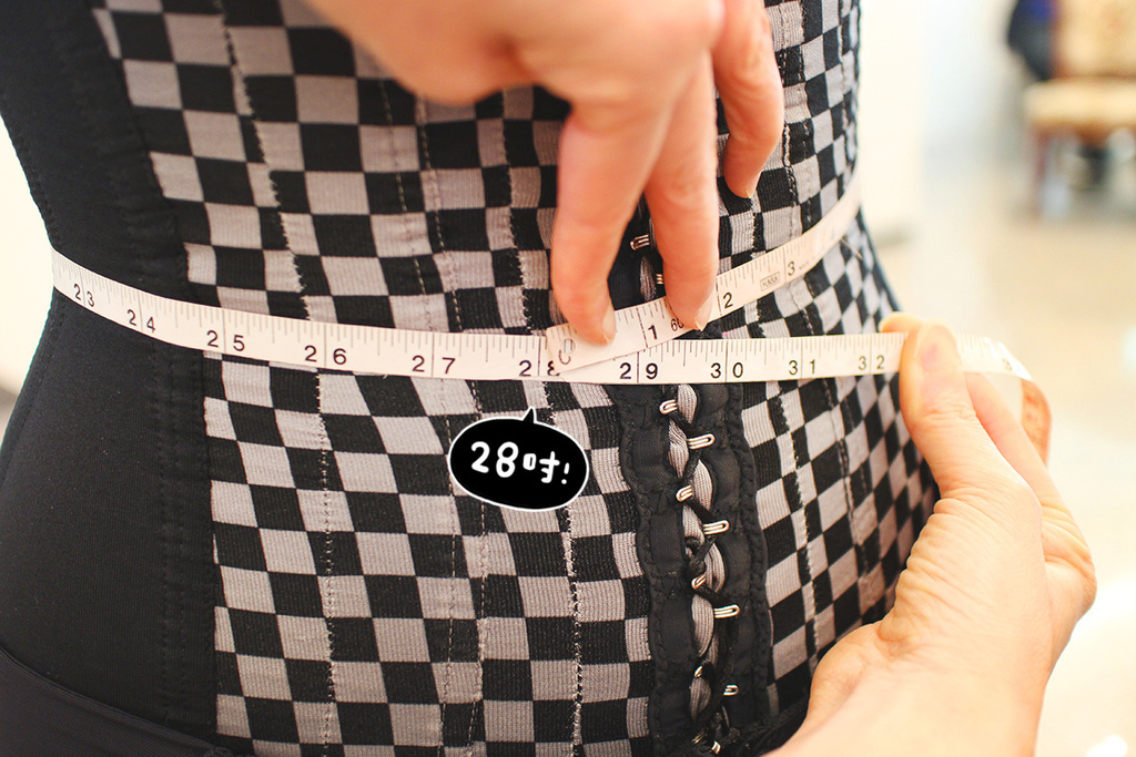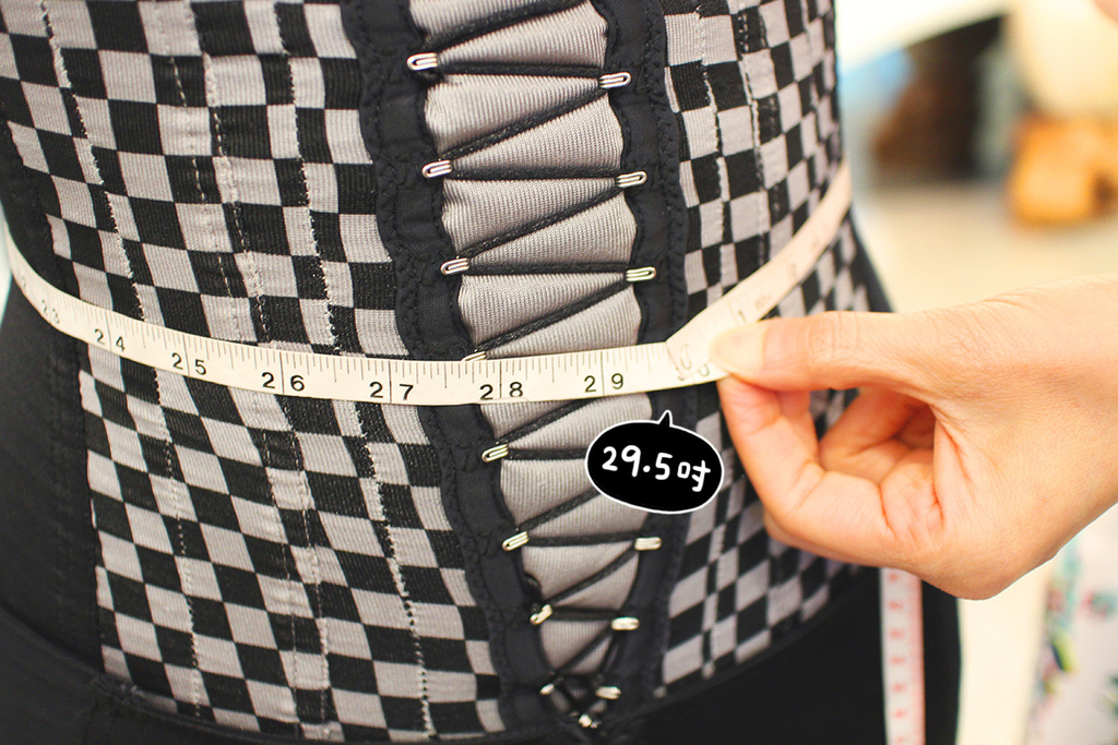 穿上塑身衣量後則是29.5吋,瞬間小了5.5吋