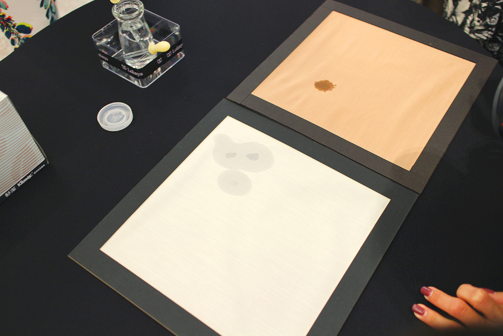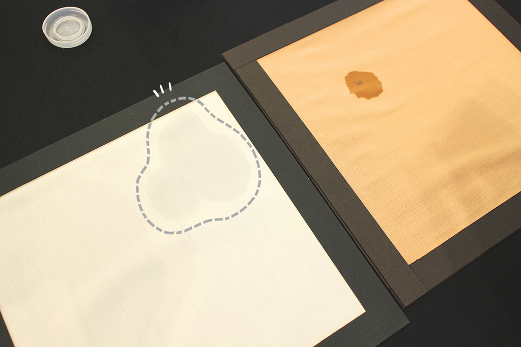 分別用水滴上去發現左邊的水不到一分鐘馬上就擴散開來,而且已經看不到水痕快要乾了,右邊則是還很濕
