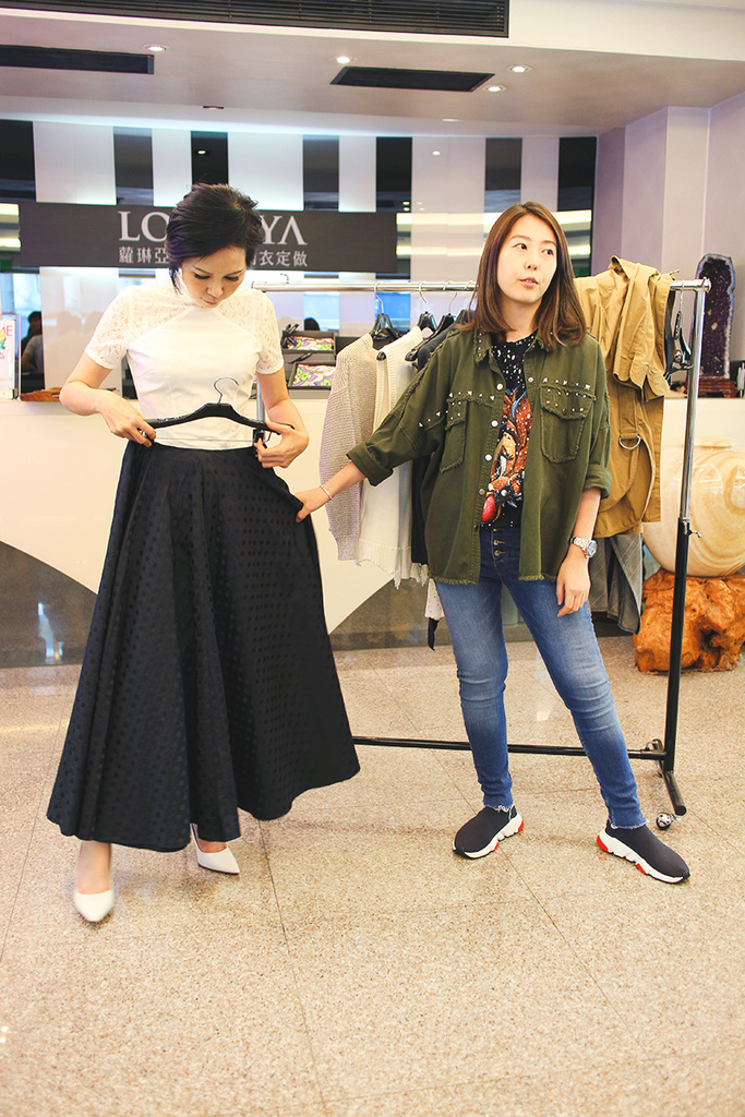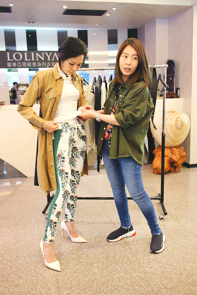 然後現場也準備了一些衣服做搭配,表示他們家的塑身衣其實是可以當外褲穿的