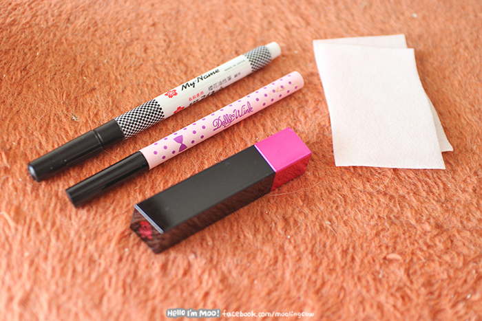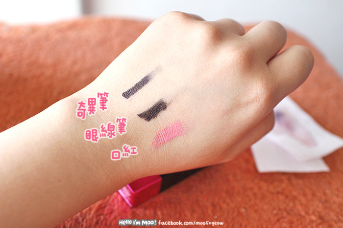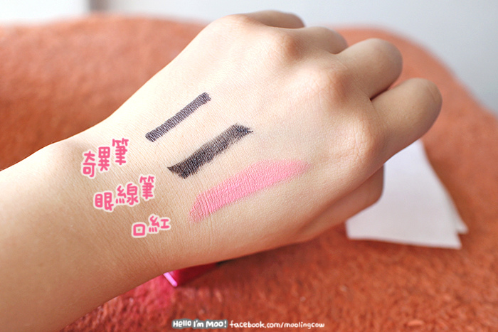 我還準備了奇異筆試試看,所以由上而下依序是奇異筆、眼線液(防水)、口紅