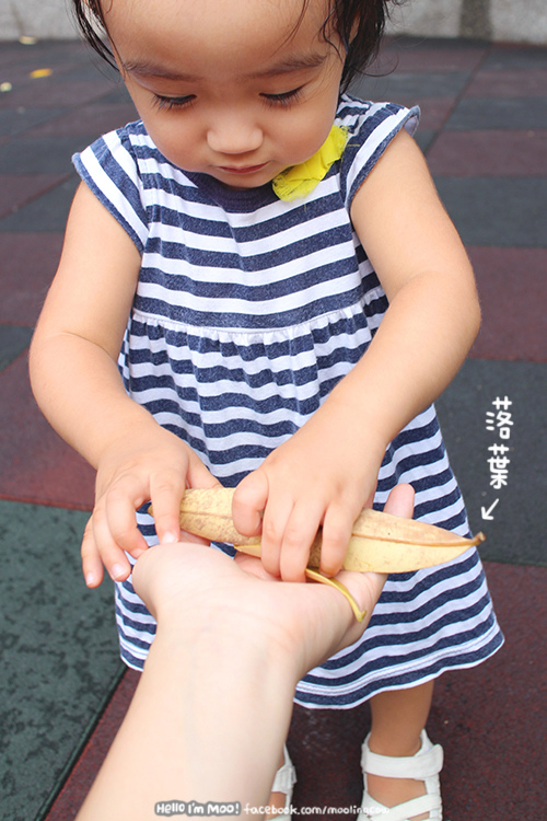 最近還很喜歡撿樹葉遊戲XD附近的公園落葉很多她都會一直撿來給我