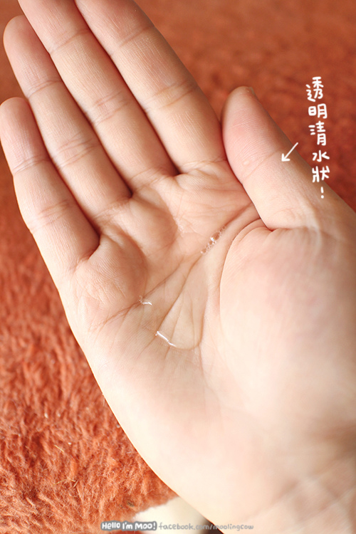 它的質地就像是水一樣,可以直接用來洗手,但要記得用衛生紙或乾淨的布稍微擦乾,不然會有點黏黏的唷