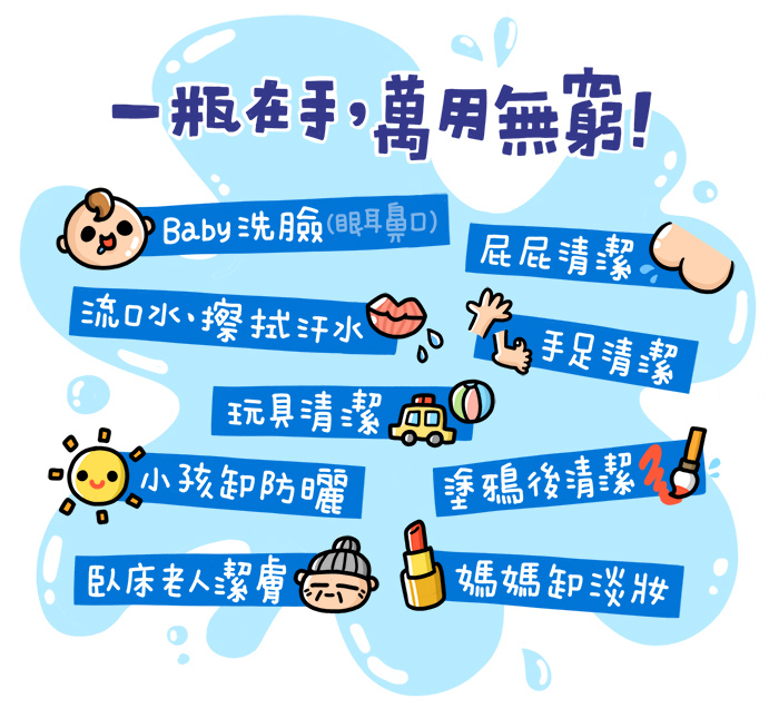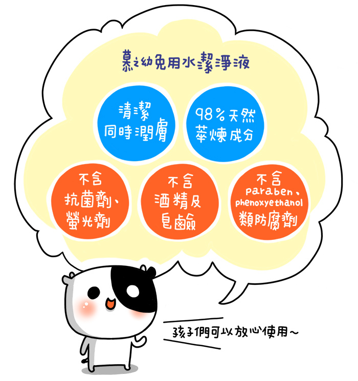 慕之幼免用水潔淨液的用途很廣,而且成分依然很天然,不含許多令人擔心的成分