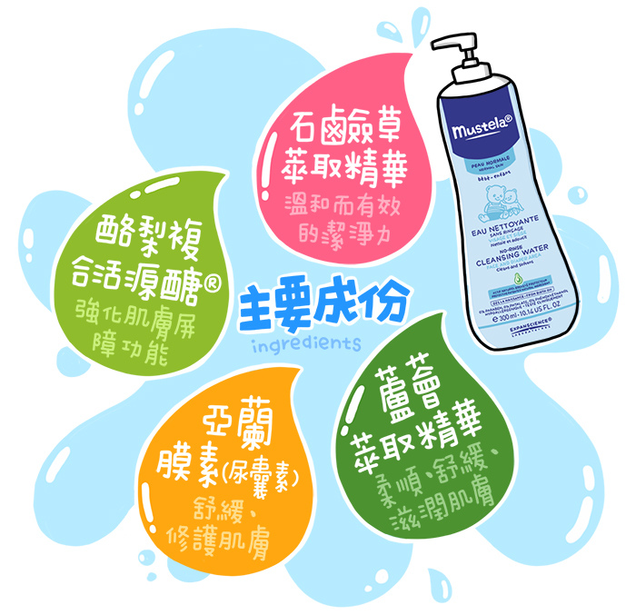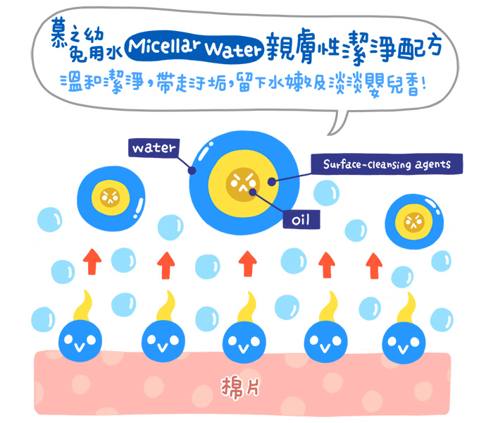 慕之幼免用水潔淨液還有三種護膚成分,清潔之餘還可以兼保養所以用完不會乾燥緊繃