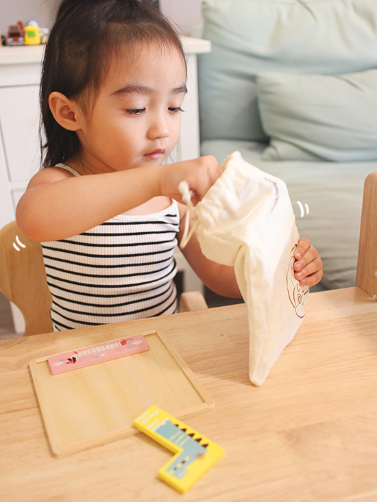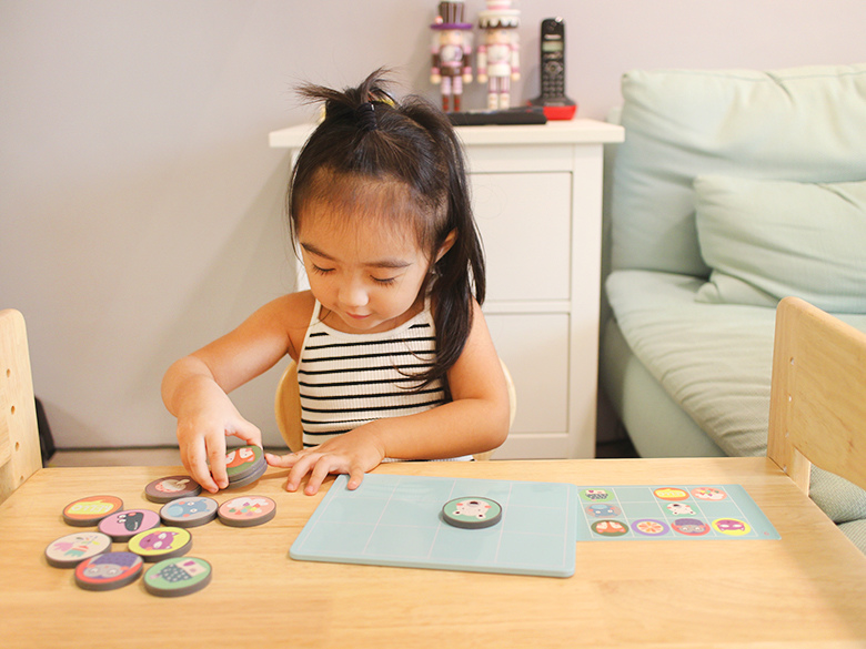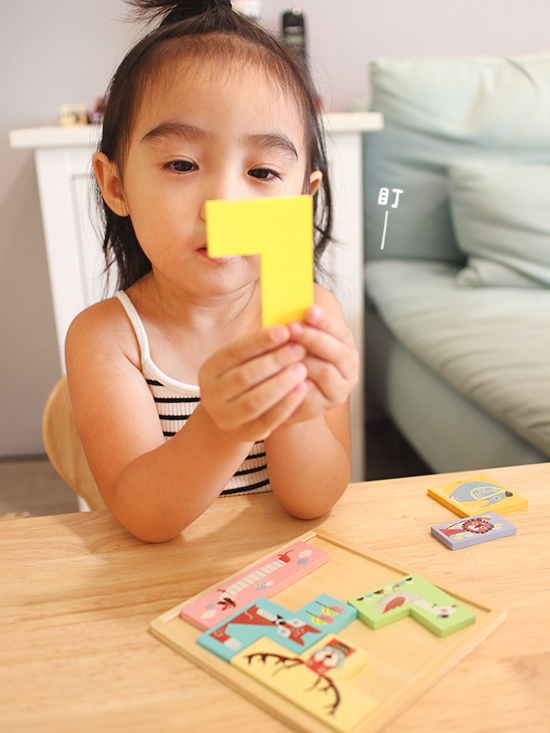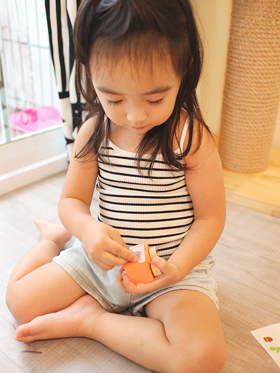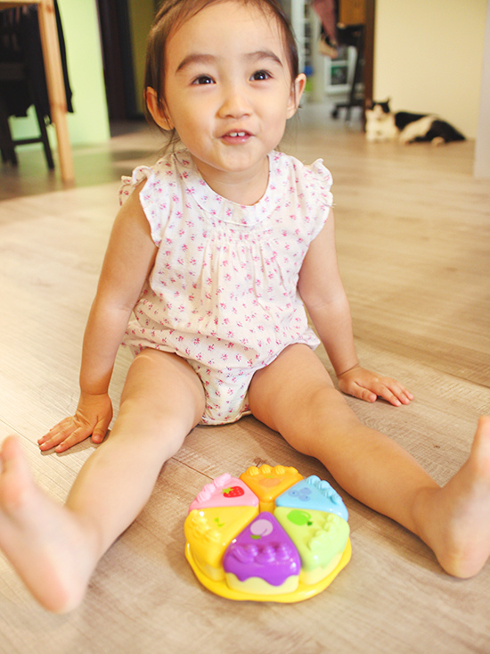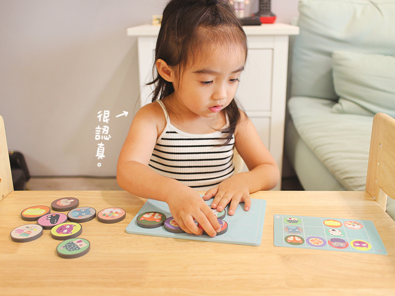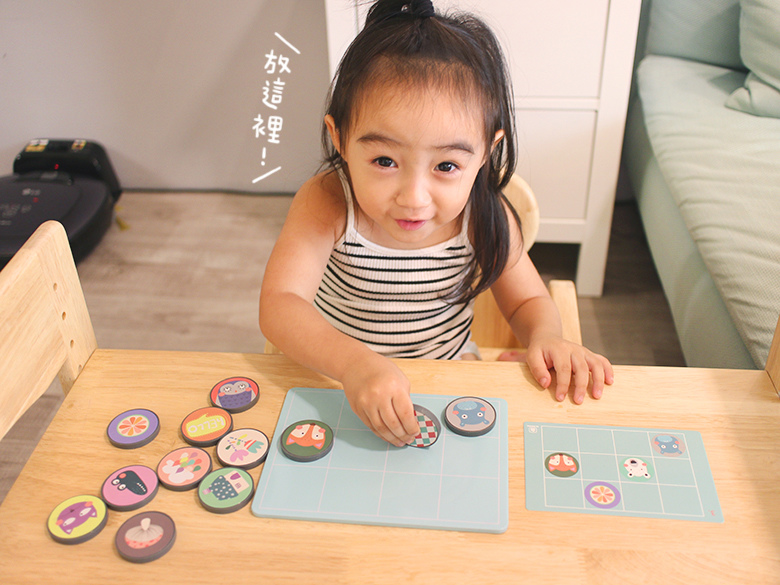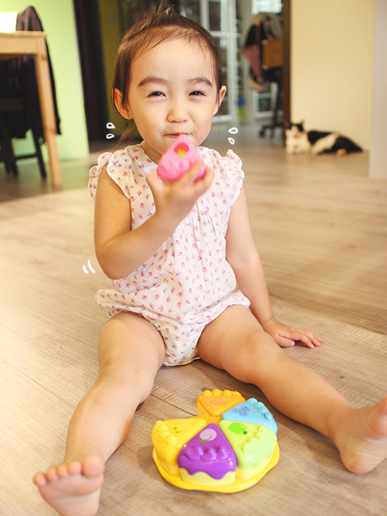 小哞一開始不太會照正確方向放回去,但後來玩久會放了她還滿開心的(好容易滿足)
