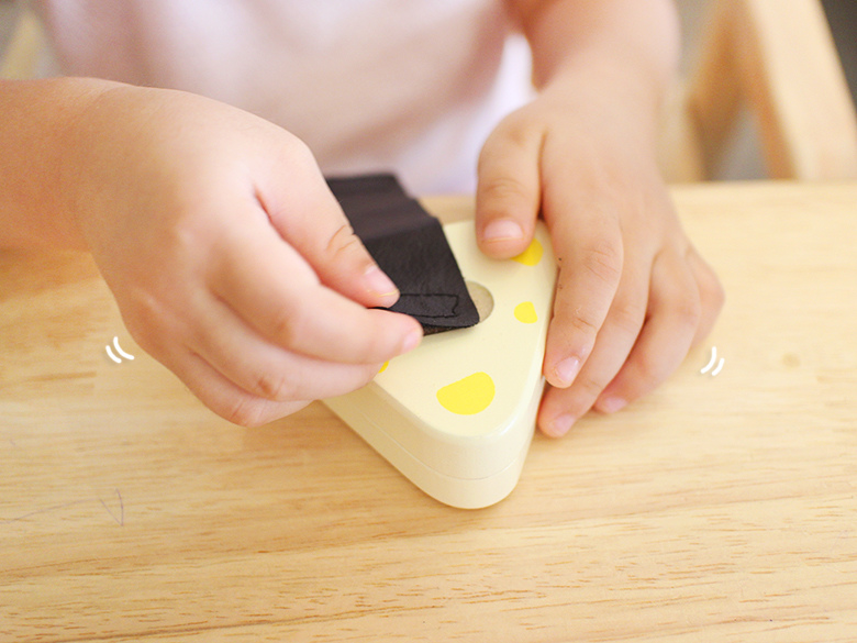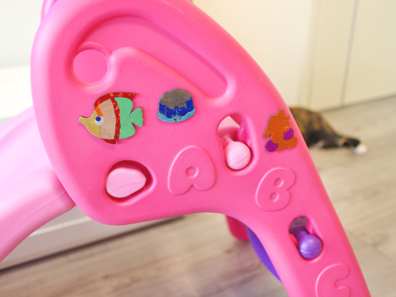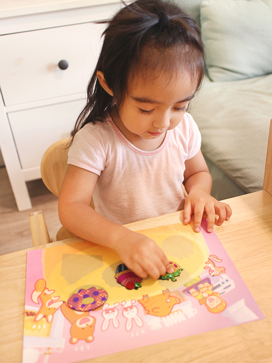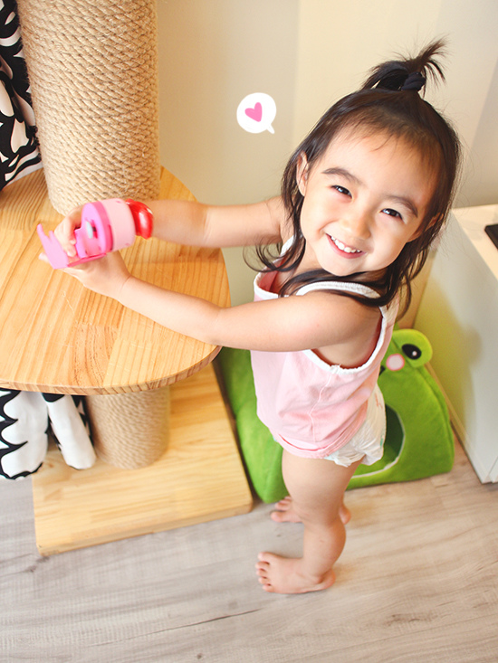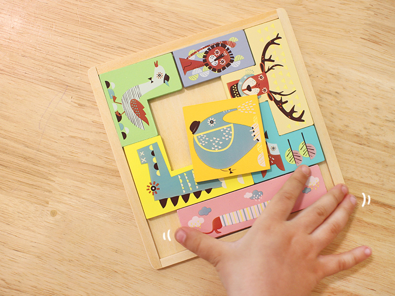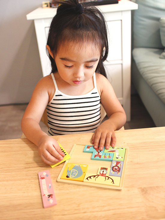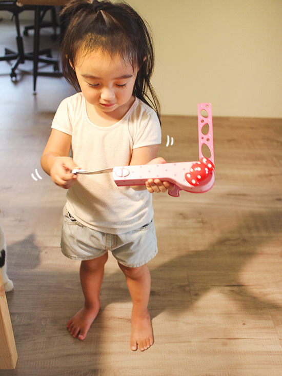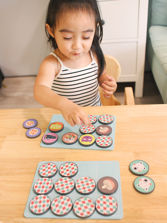 小哞一開始不太會照正確方向放回去,但後來玩久會放了她還滿開心的(好容易滿足)