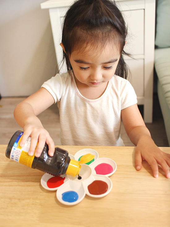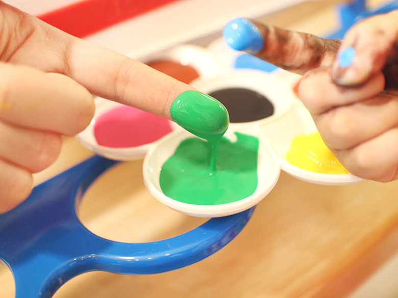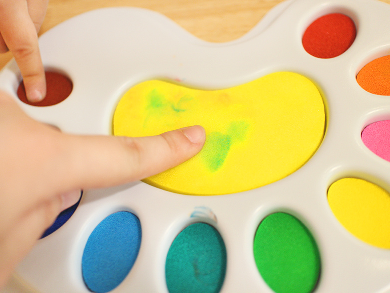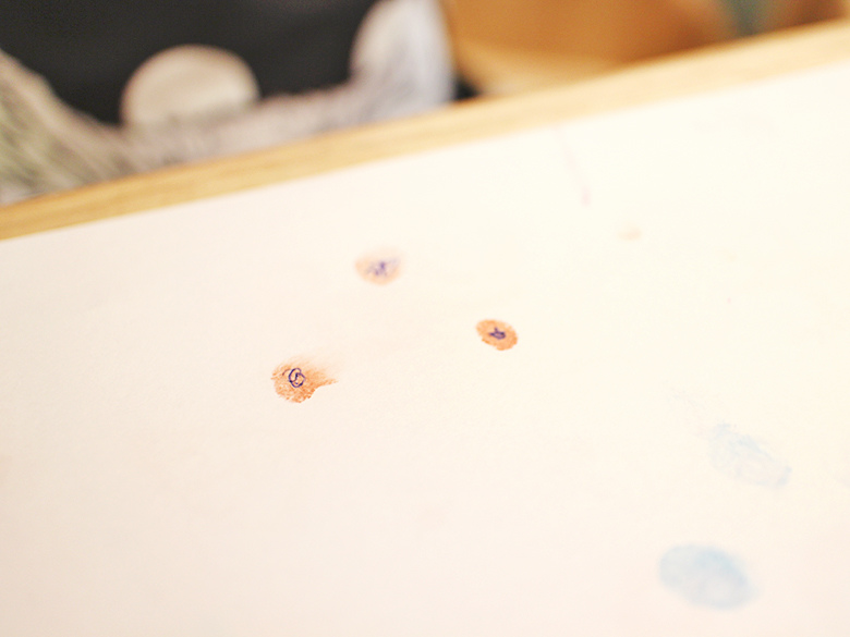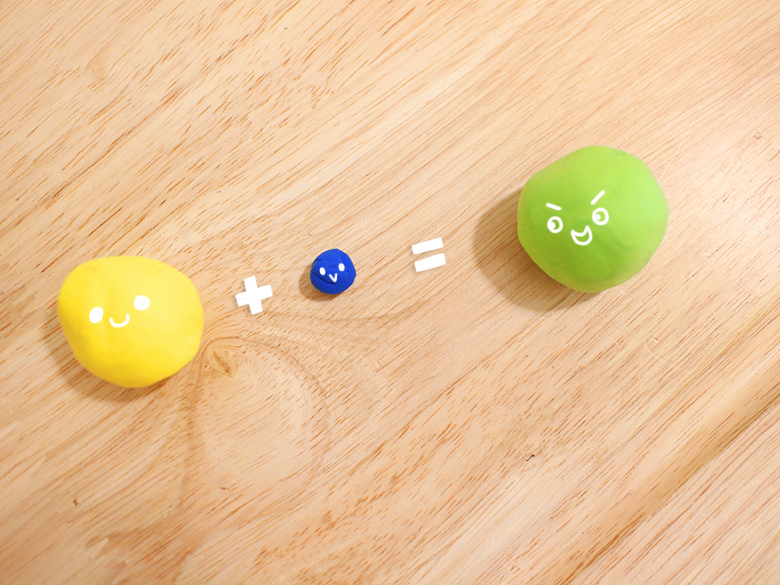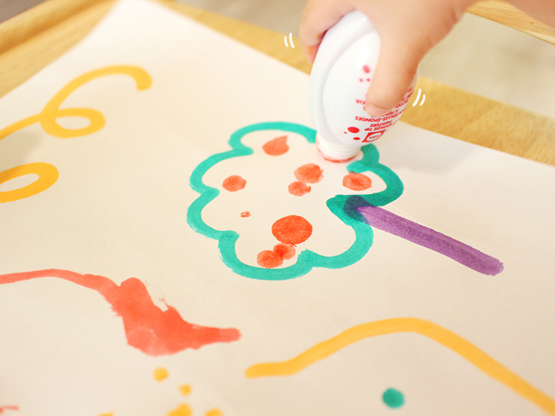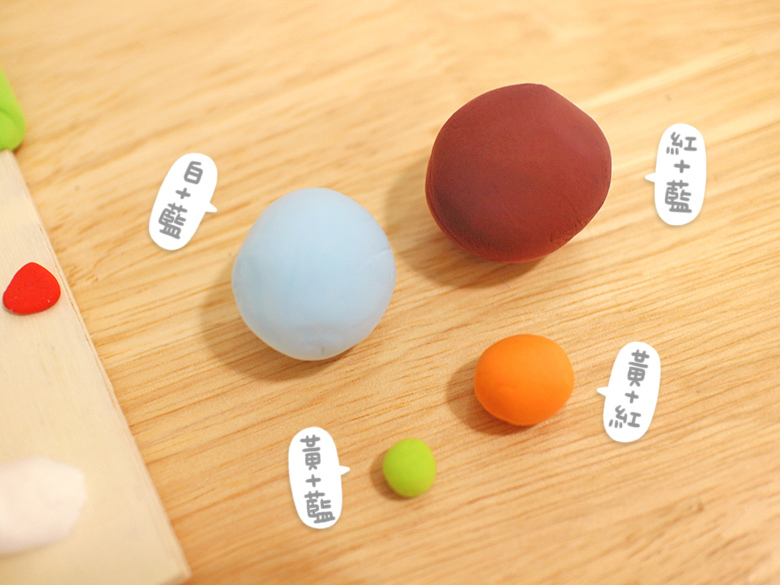 可以跟小人玩說紅色是紅茶,綠色是綠茶,橘色是果汁~