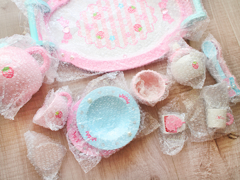 上面還有亮晶晶的愛心和珍珠點綴,感覺不管上面放了什麼都會瞬間被同化成少女心啊