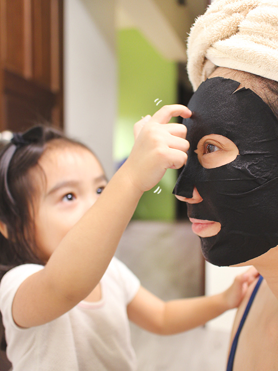 然後小哞看到很好奇一直跑過來看我到底在幹嘛,她第一次看到我敷黑色面膜所以有點害怕